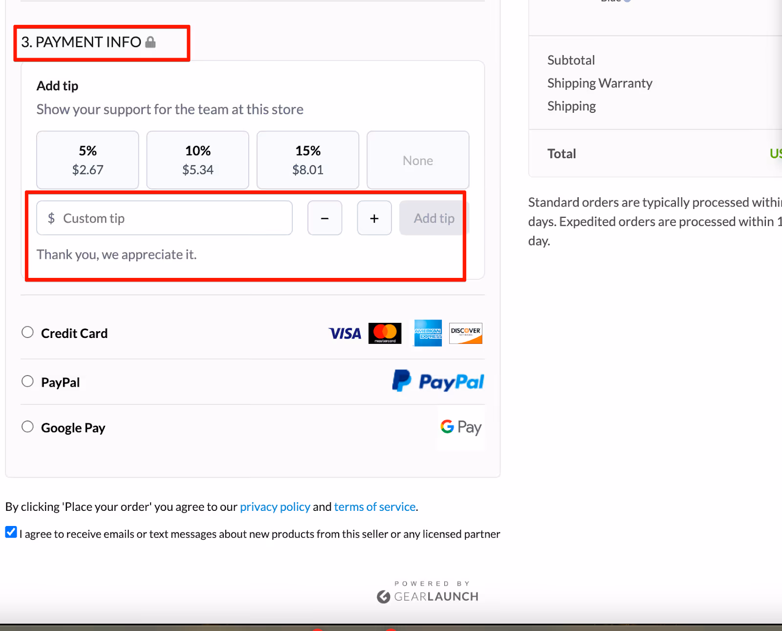 Customers can now add a voluntary tip during checkout to support your store.