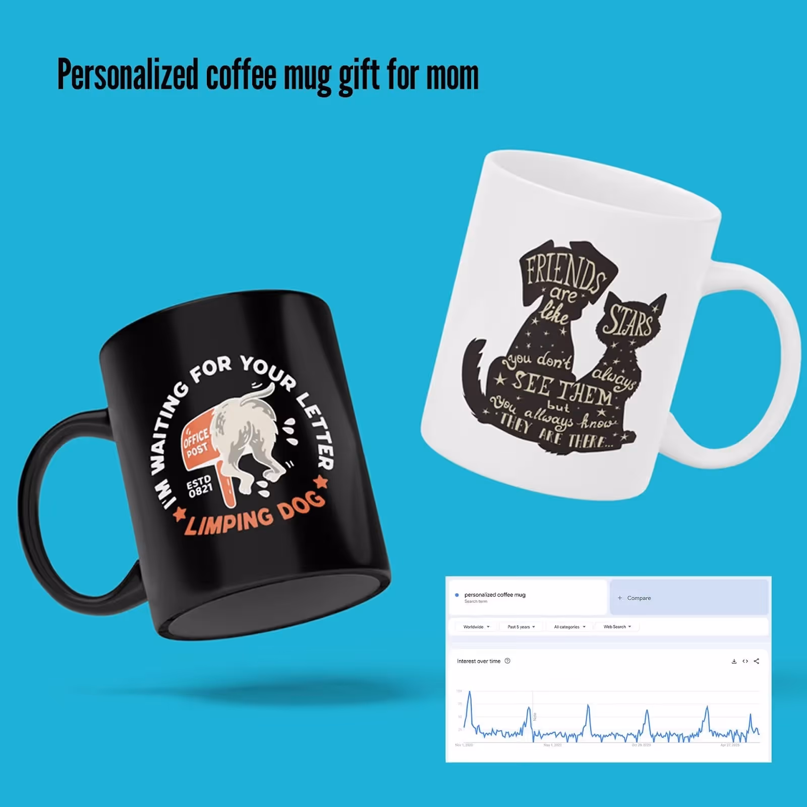 Example: Photo of someone holding a custom mug with overlay text "Best Personalized Gifts Under $30"